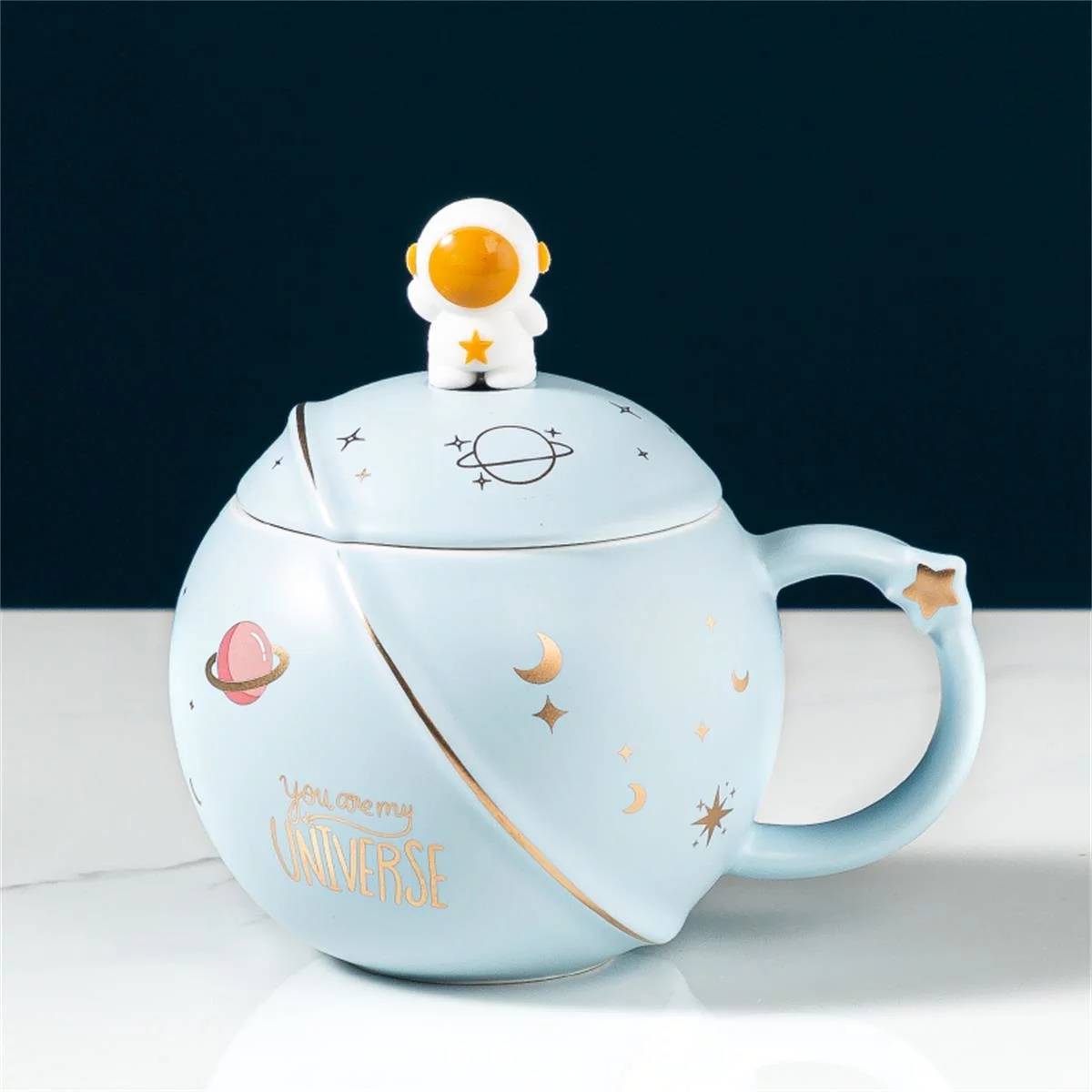 包邮 新款宇航员太空杯带盖勺萌系卡通宇宙陶瓷杯子早餐咖啡杯