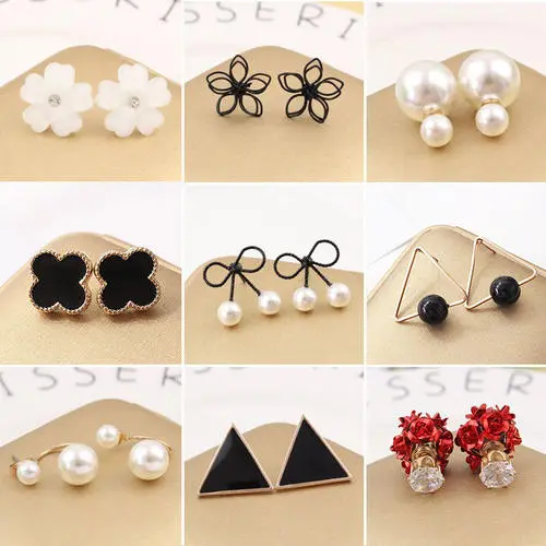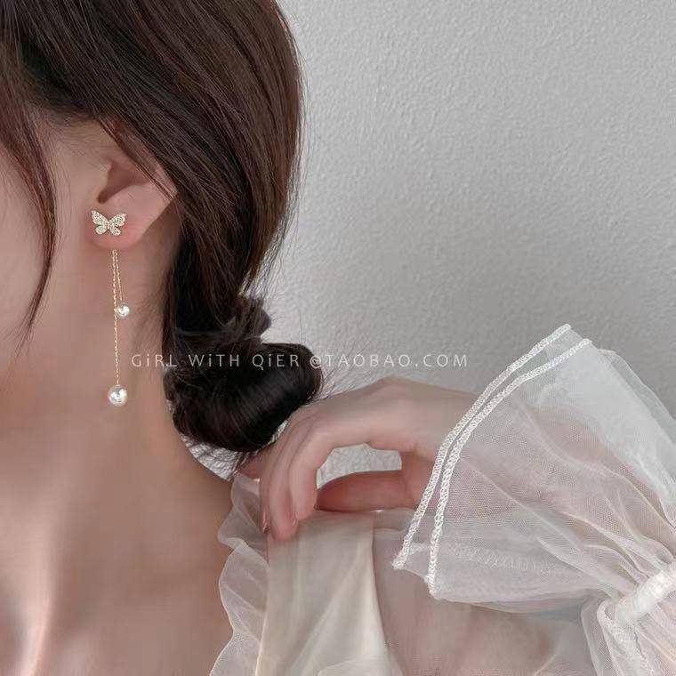 韩国东大门925银简约百搭蝴蝶结珍珠小巧耳坠甜美风耳饰耳钉耳环