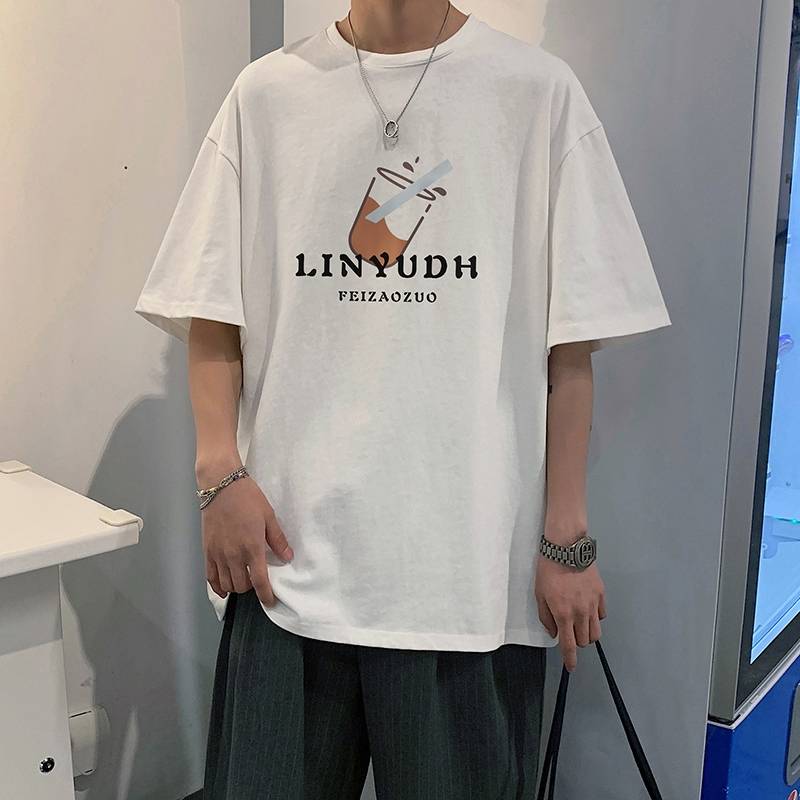 夏季韩版宽松t恤短袖男印花青少年新款半袖休闲大码体恤圆领男装