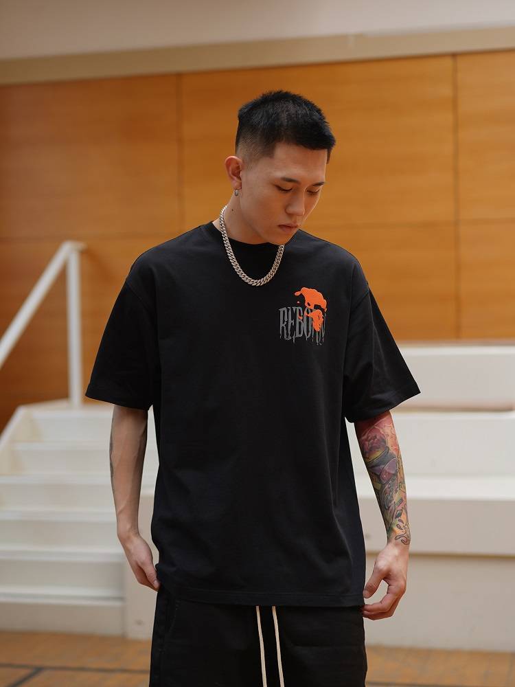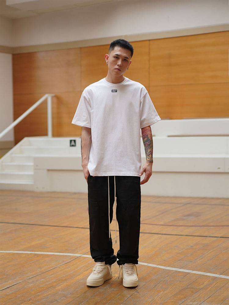 1807 夏季经典黑白色圆领重磅潮牌t恤男士纯棉短袖宽松打底衫国潮