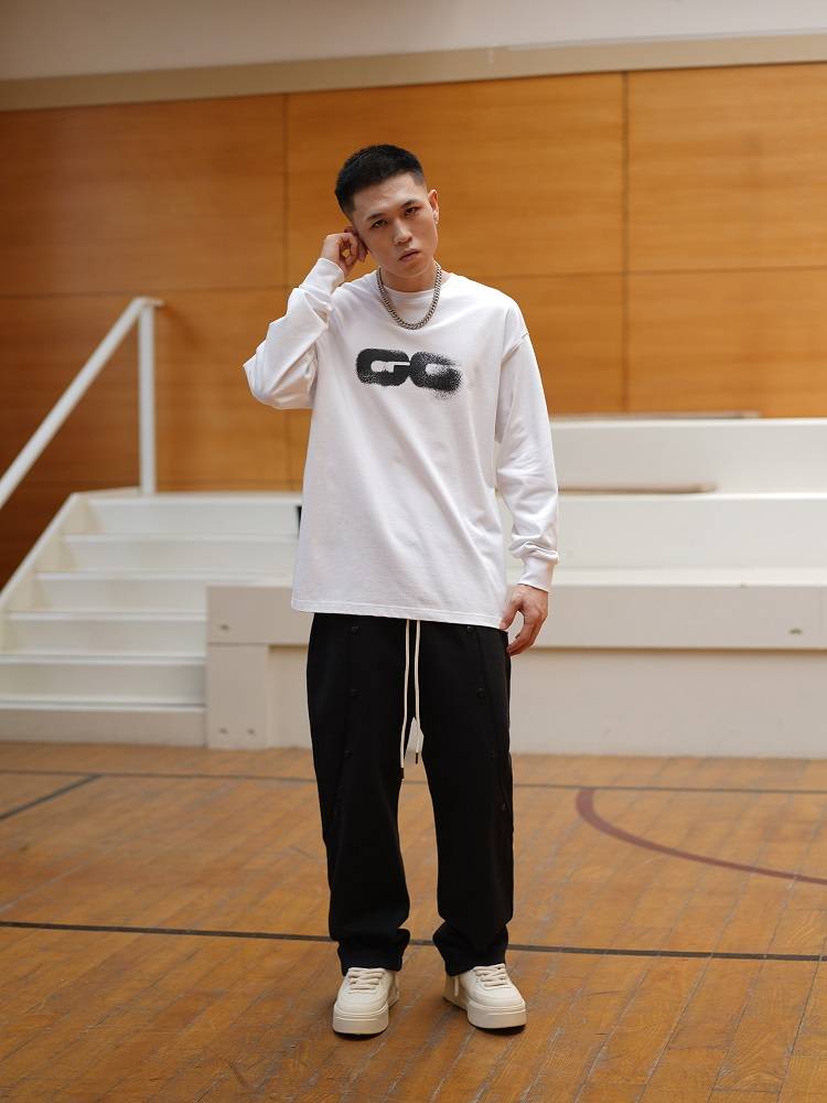 1807 GANGGANG系列2022夏季纯棉长袖T恤男休闲宽松基础打底衫美式