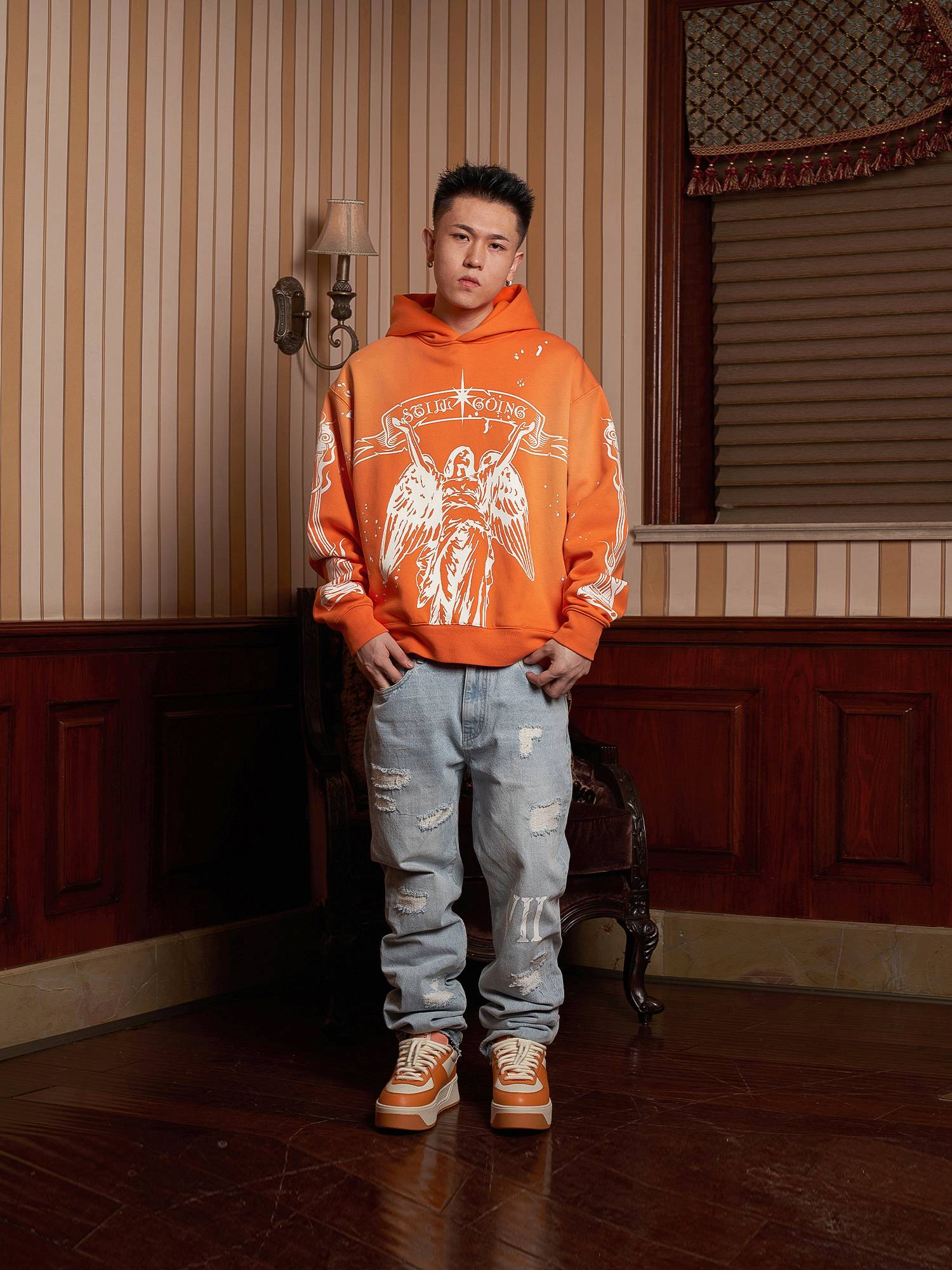 1807 周年系列天使连帽卫衣男加绒秋季新款重磅上衣宽松国潮男装