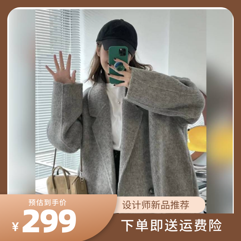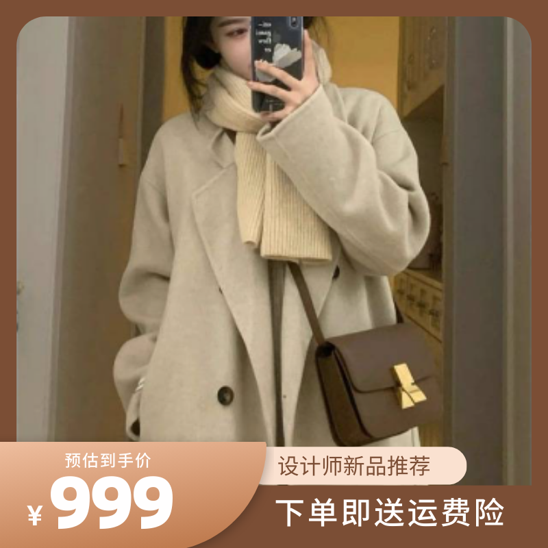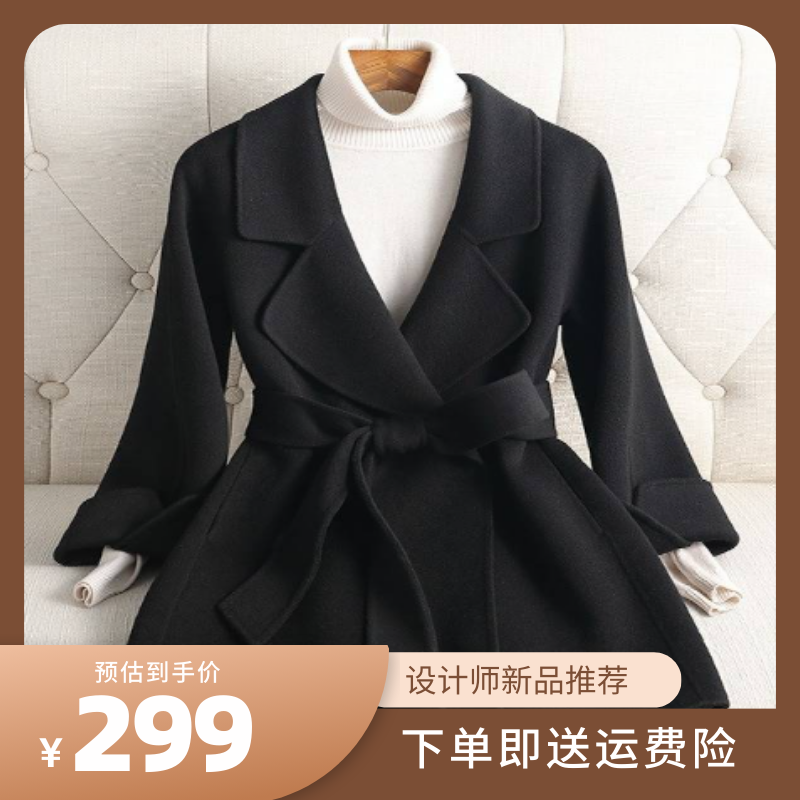 韩国东大门高端婴驼绒双面羊毛手缝大衣简约百搭气质 长款女