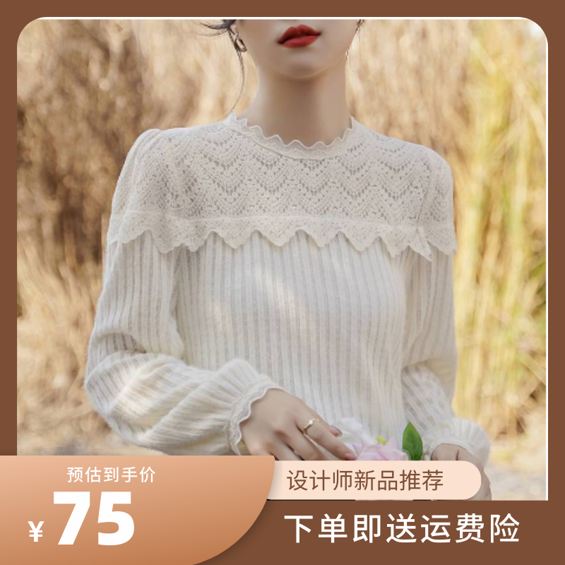蕾丝上衣2023新款荷叶边拼接蕾丝洋气内搭打底衫