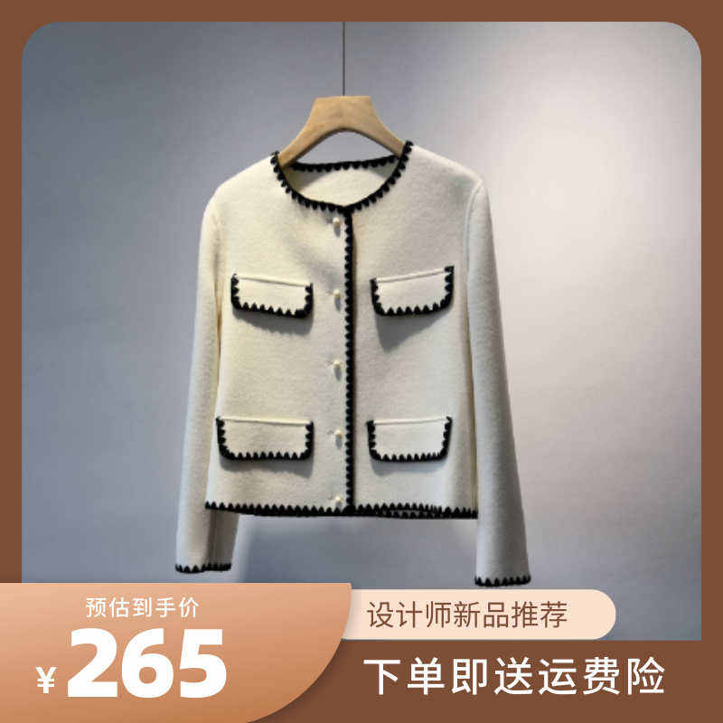 赫本风撞色装饰线小香风羊毛外套女短款双面呢