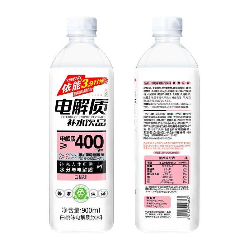 【900ml大瓶装】依能电解质水补水饮料白桃味饮料900ml*6瓶