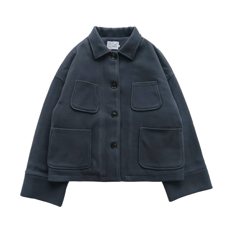 超推荐 4口袋大袖子茧型毛呢外套女短款oversize冬