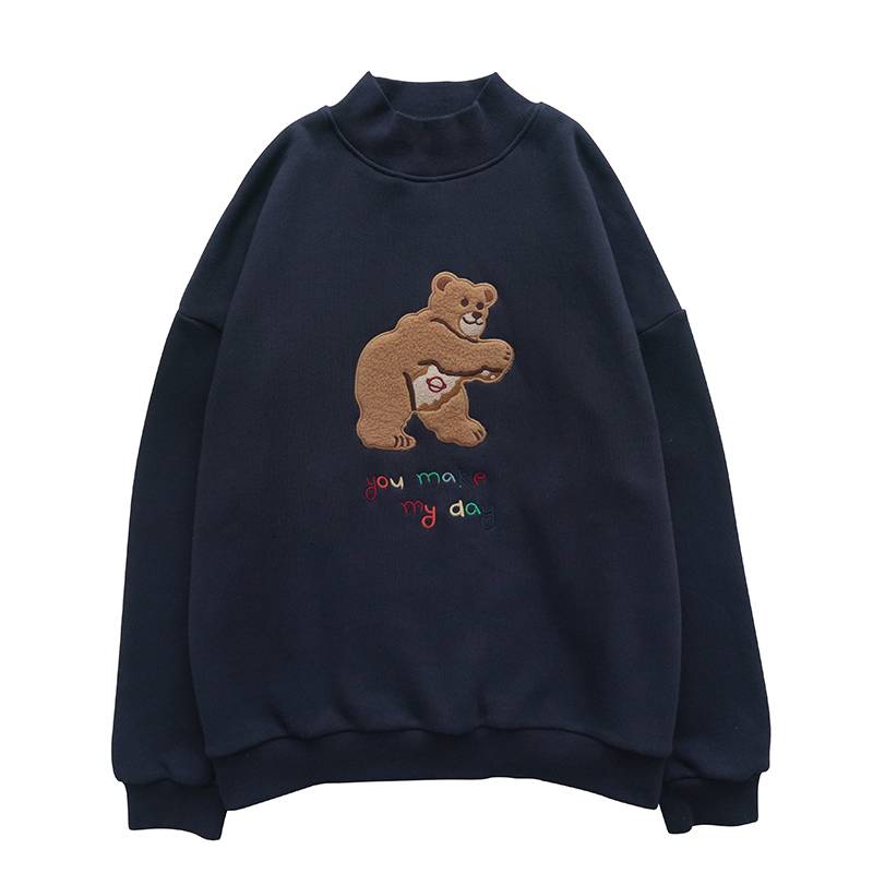摇粒绒刺绣小熊卫衣女宽松半高领童趣可爱柔软舒适