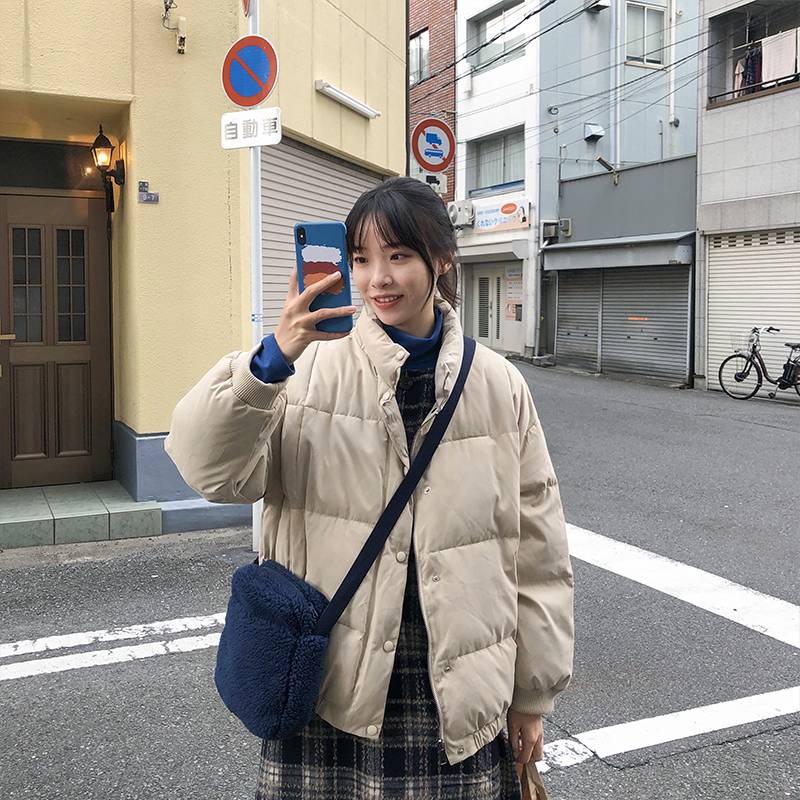 立领拉链方块棉服女短款面包服外套冬季2019新款