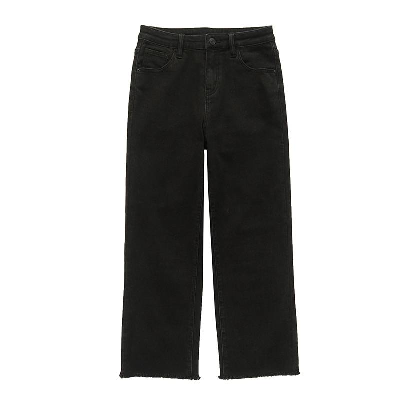 毛边小合身内磨毛弹力牛仔裤复古直筒九分显瘦百搭