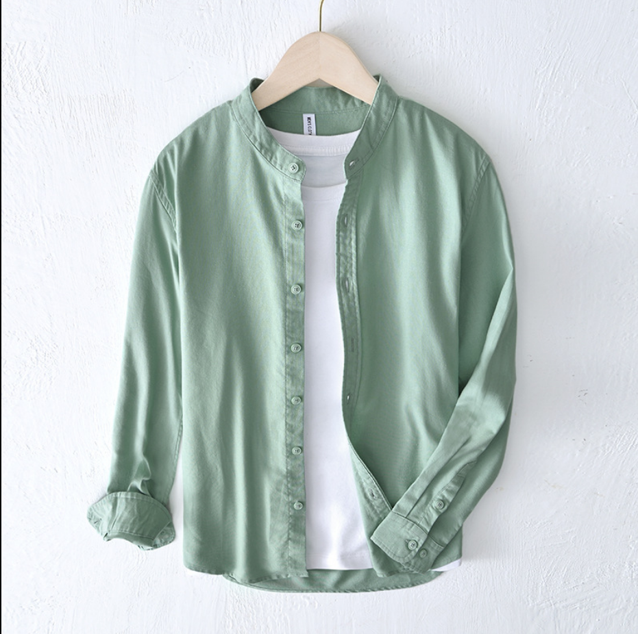 春夏季立领士棉麻衬衫百搭清新宽松休闲纯色潮流长袖衬衣