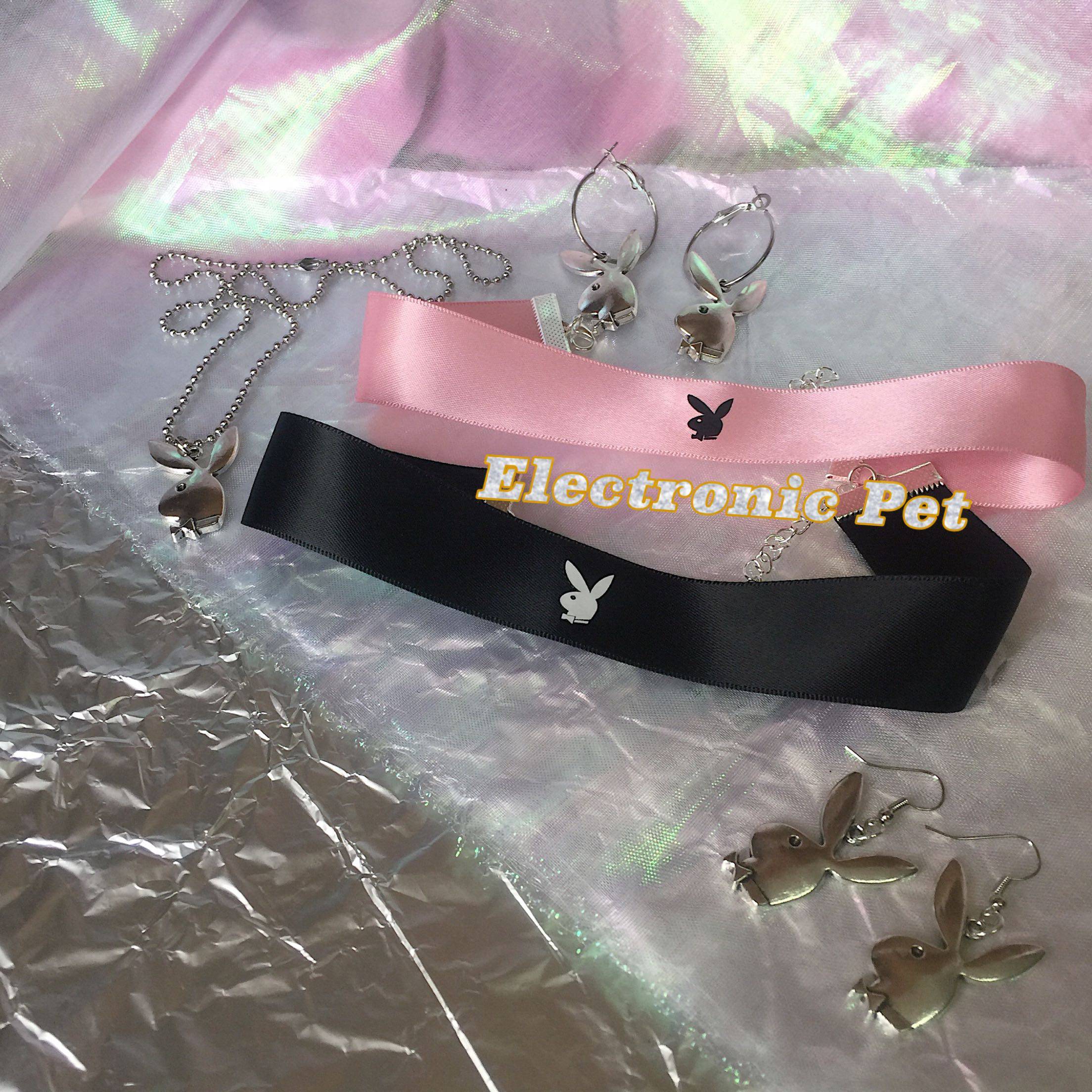 play boy兔头项圈choker抛光面耳环项链ins同款
