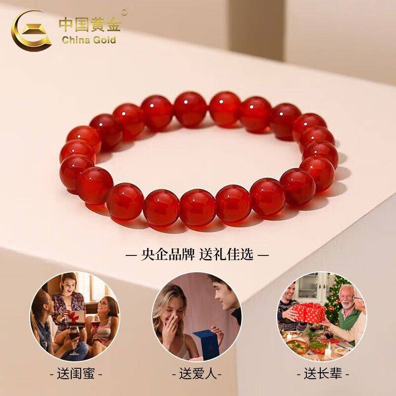 中国黄金红色玛瑙手链女男本命年情侣款手串散珠水晶串女神节