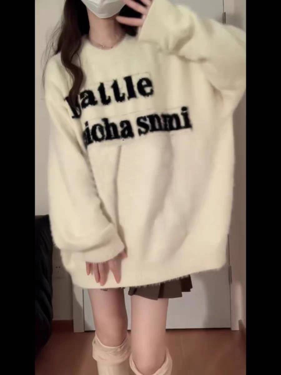 白色软糯水貂绒毛衣女秋冬2023新款宽松针织加厚温柔慵懒风高级感