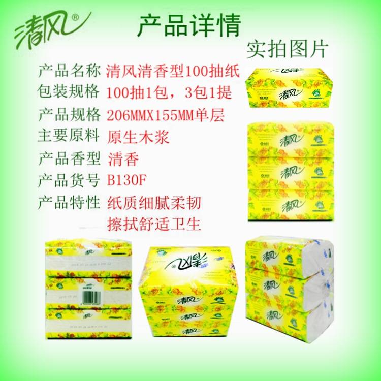 清风抽纸清香型100抽 24提起拍 3包1提礼品代发面巾纸餐巾纸纸巾 5.00 已售:0件