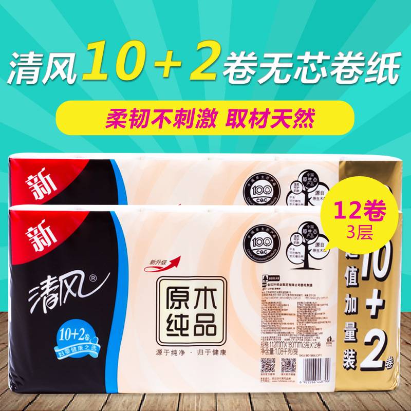 清风B01B9LCP1原木纯品10+2三层超值装10提无芯卷纸江浙沪皖包邮 208.50 已售:0件