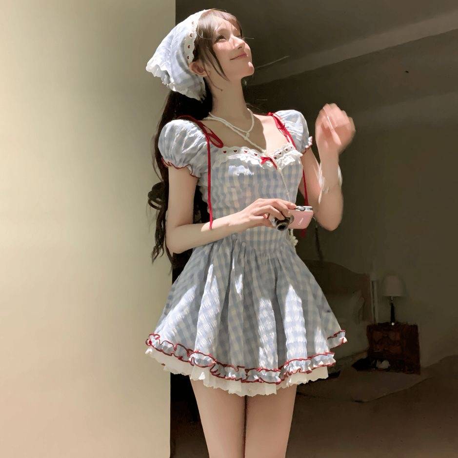 【可可酱】多巴胺辣妹短裙少女格子可爱小个子甜辣甜心甜美连衣裙
