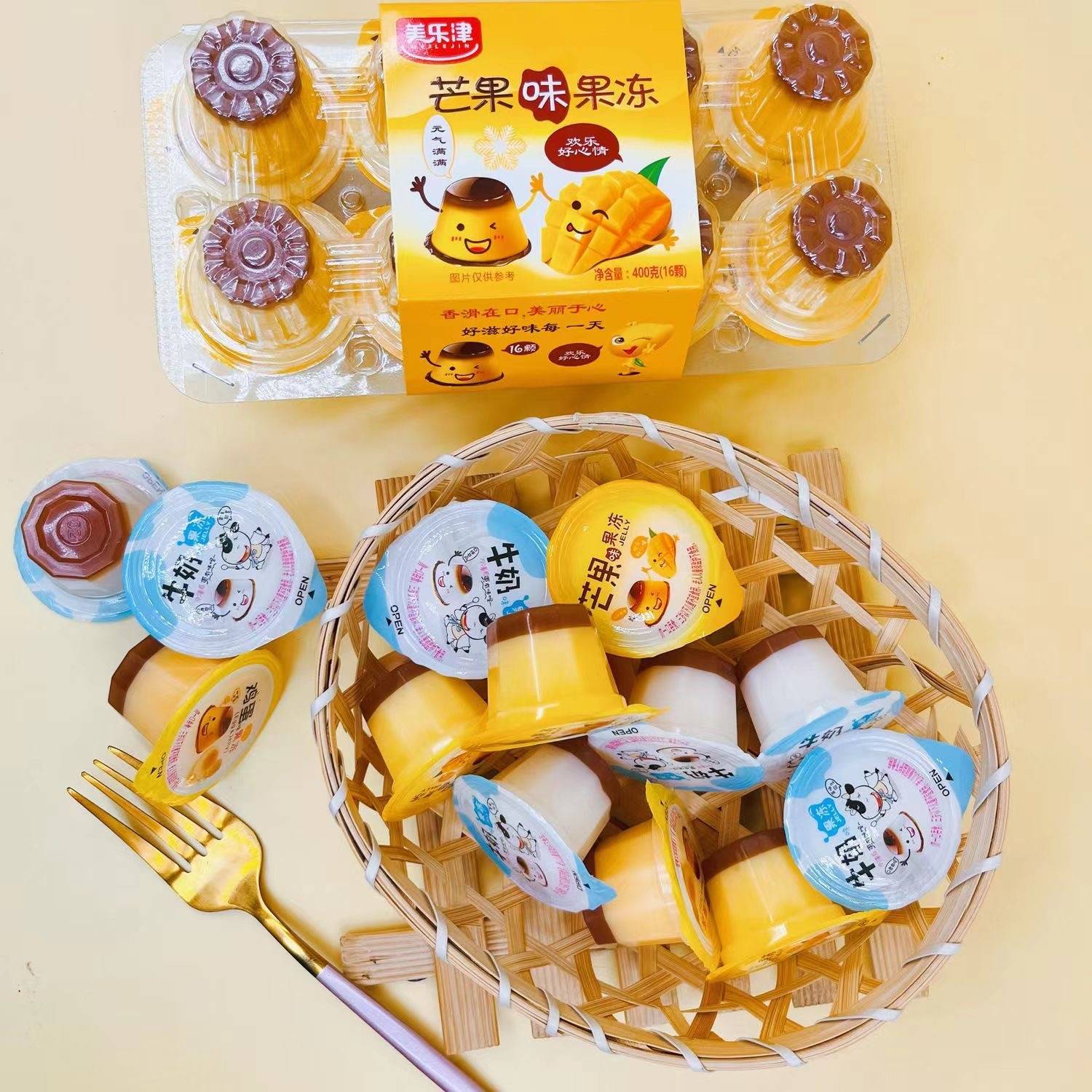 进口美乐津果冻鸡蛋味芒果牛奶味果冻果汁焦糖双色果冻盒