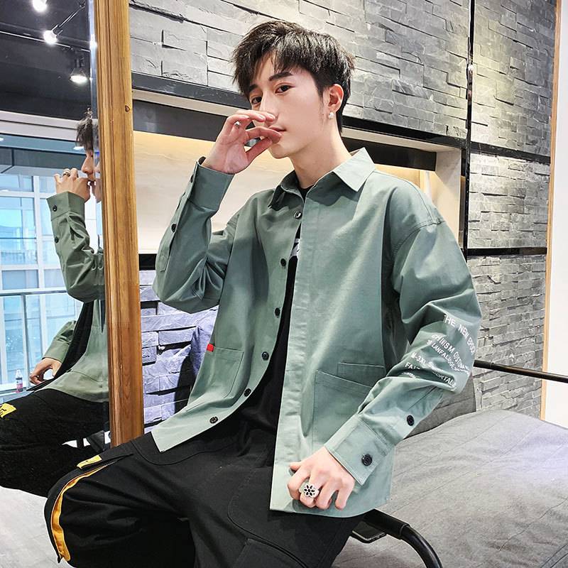 2019男士春装新款港风休闲百搭衬衣男青少年网红学生修身寸衫上衣