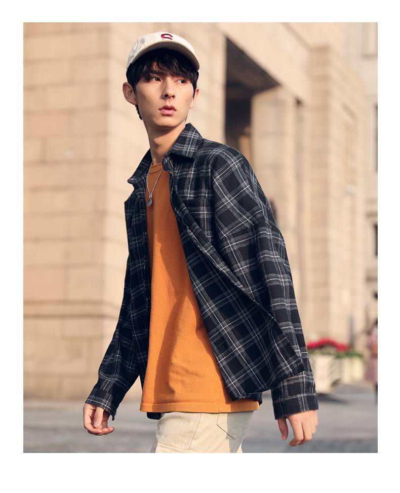 2019春季新品男士格子衬衫长袖翻领ins宽松衬衣休闲外套