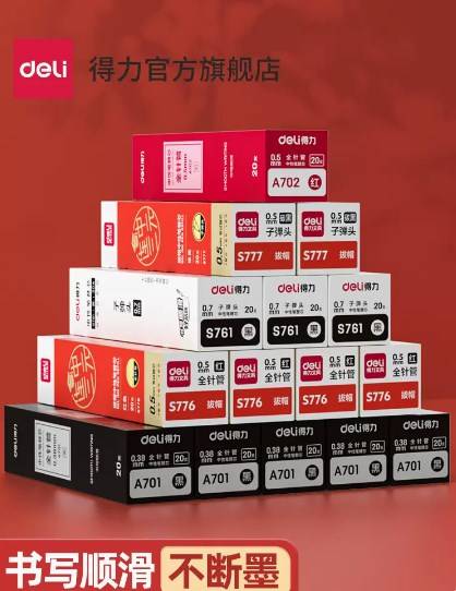 得力按动笔芯按动笔中性笔替芯st速干0.5
