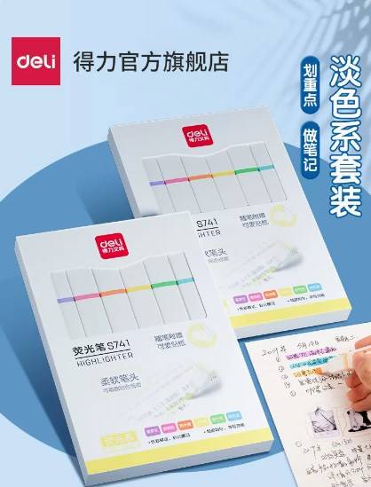 得力荧光笔划重点荧光标记笔