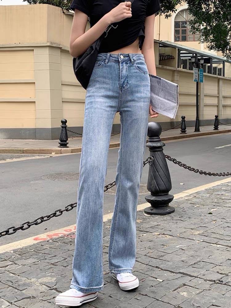 早秋薄款直筒阔腿裤子夏季2021年新款高腰修身显瘦微喇牛仔裤女装