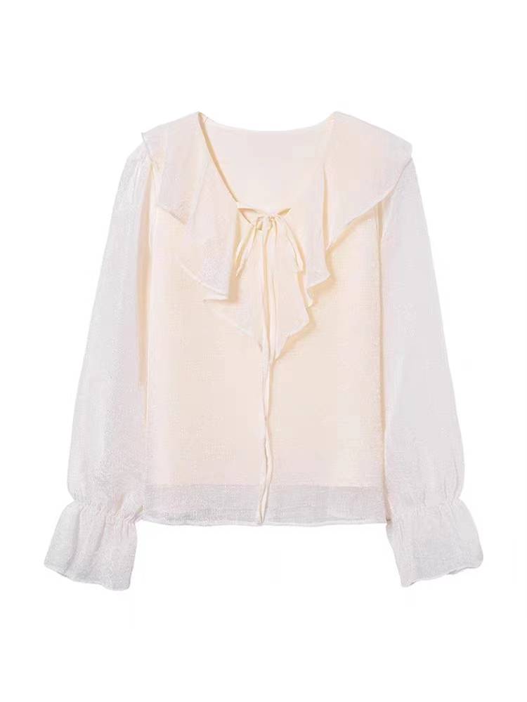 2023温柔甜美长袖法式雪纺衬衫
