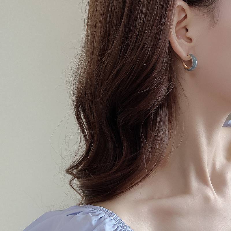 s925银针高级感耳钉女个性圆环设计法式优雅耳环气质韩国网红耳饰