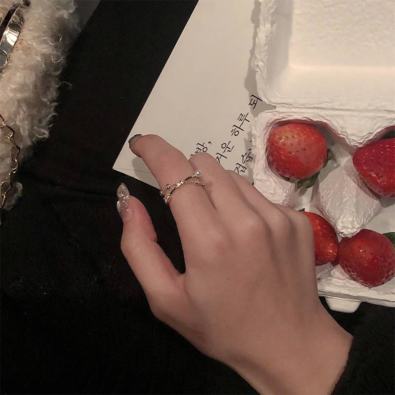 小众设计感 戒指女ins潮时尚个性锆石简约风食指戒开口可调节J230