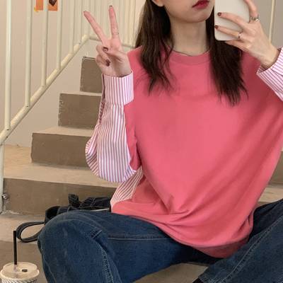 早秋秋季棉长袖t恤女士大码女装宽松上衣纯色打底衫