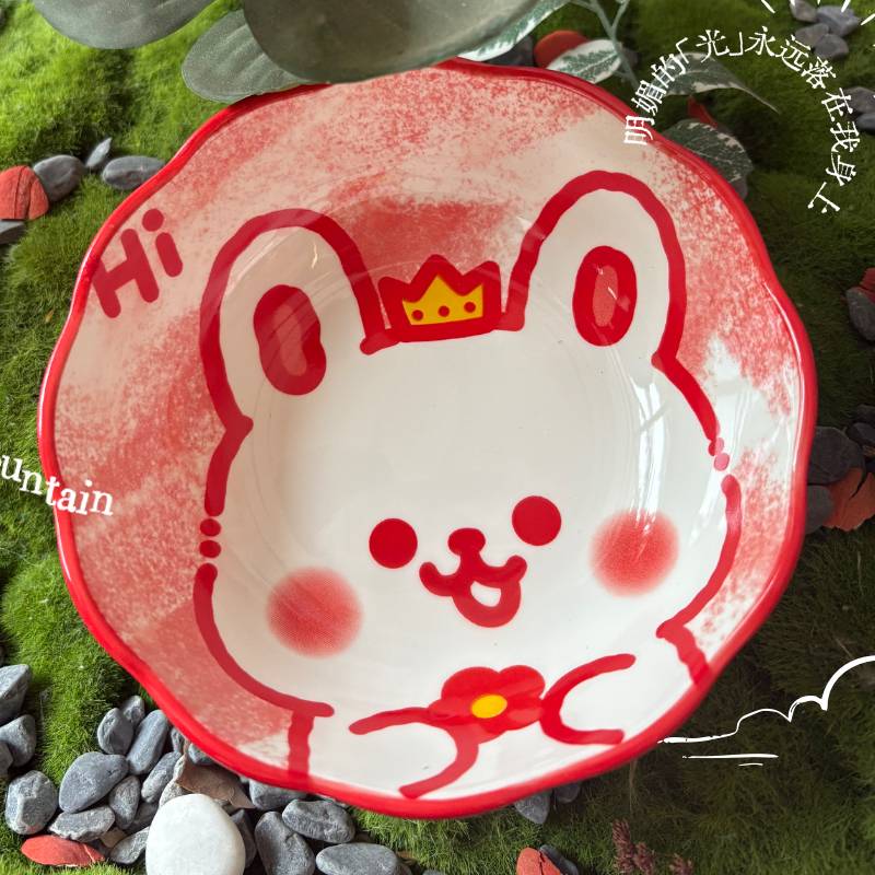 萌趣兔子陶瓷碗 家用可爱少女心饭碗 网红ins风波浪边汤碗早餐碗