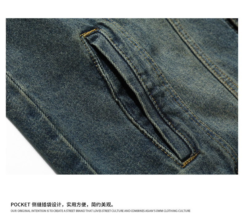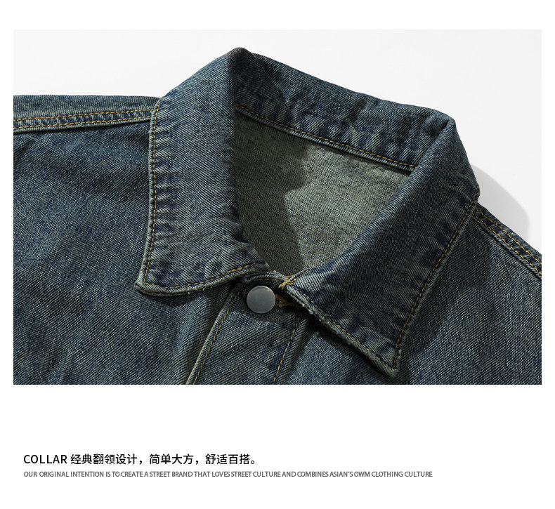 cleanfit美式复古蓝牛仔外套男春秋水洗做旧男生初秋工装夹克上衣
