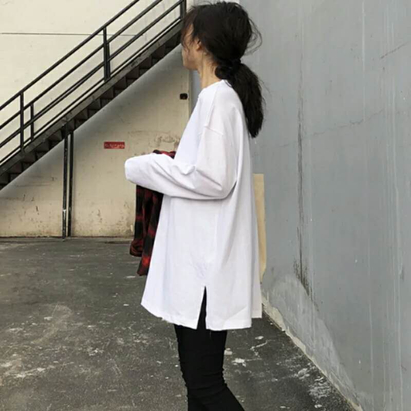 秋装2018新款韩版白色T恤女纯棉纯色宽松长袖体恤百搭打底衫上衣