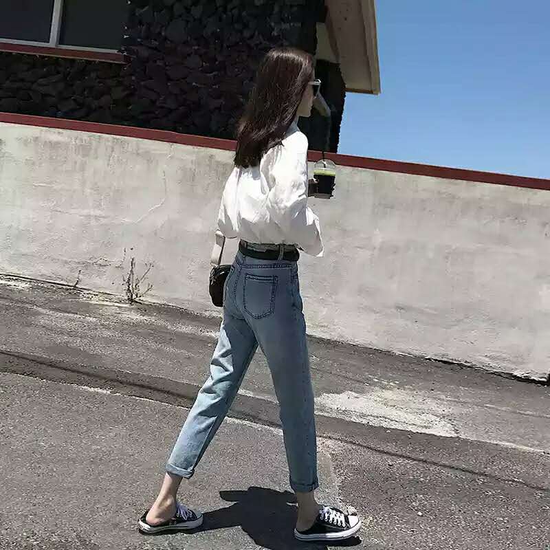 原宿风直筒牛仔裤女春秋2018新款韩版显瘦宽松百搭bf学生哈伦阔腿