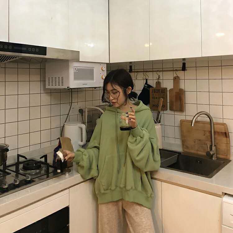 nini 早秋加厚型慵懒风卫衣女潮2018新款女长袖 韩版 宽松外套秋