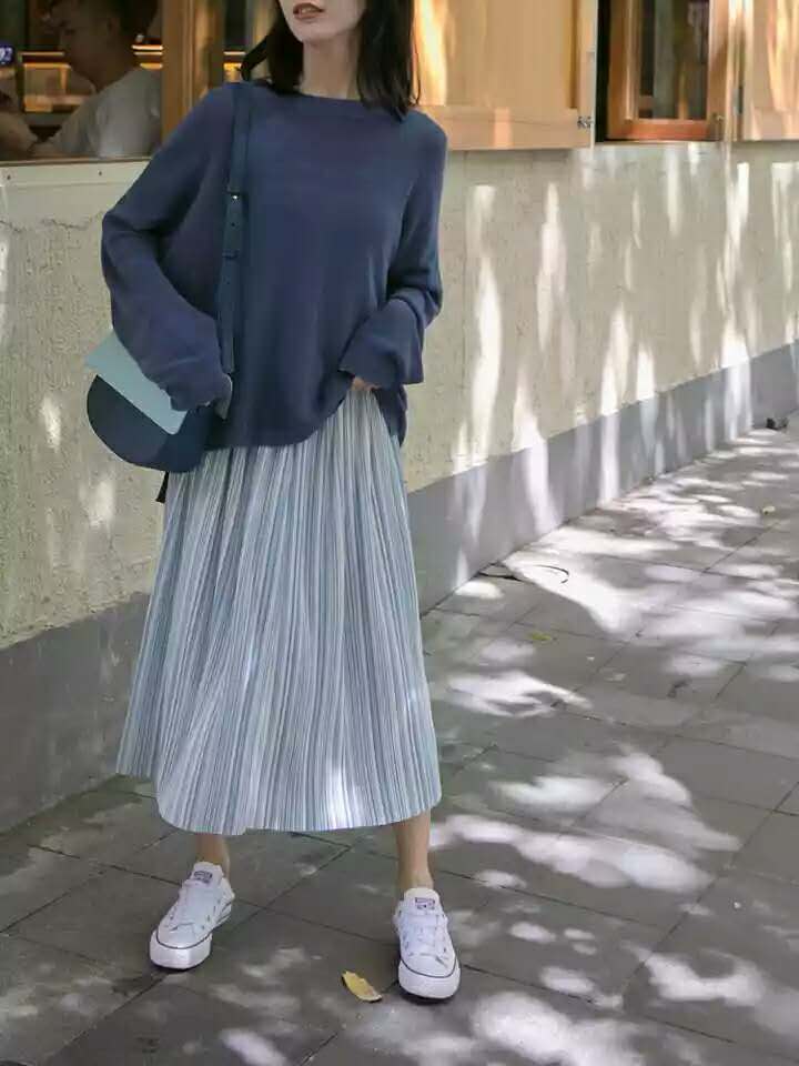 卡农自制半身裙秋季女学生韩版2018秋装新款高腰显瘦中长款百褶裙
