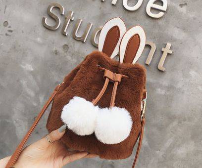 KISS ME可爱萌包包女2018新款斜挎包时尚少女单肩包毛绒水桶包