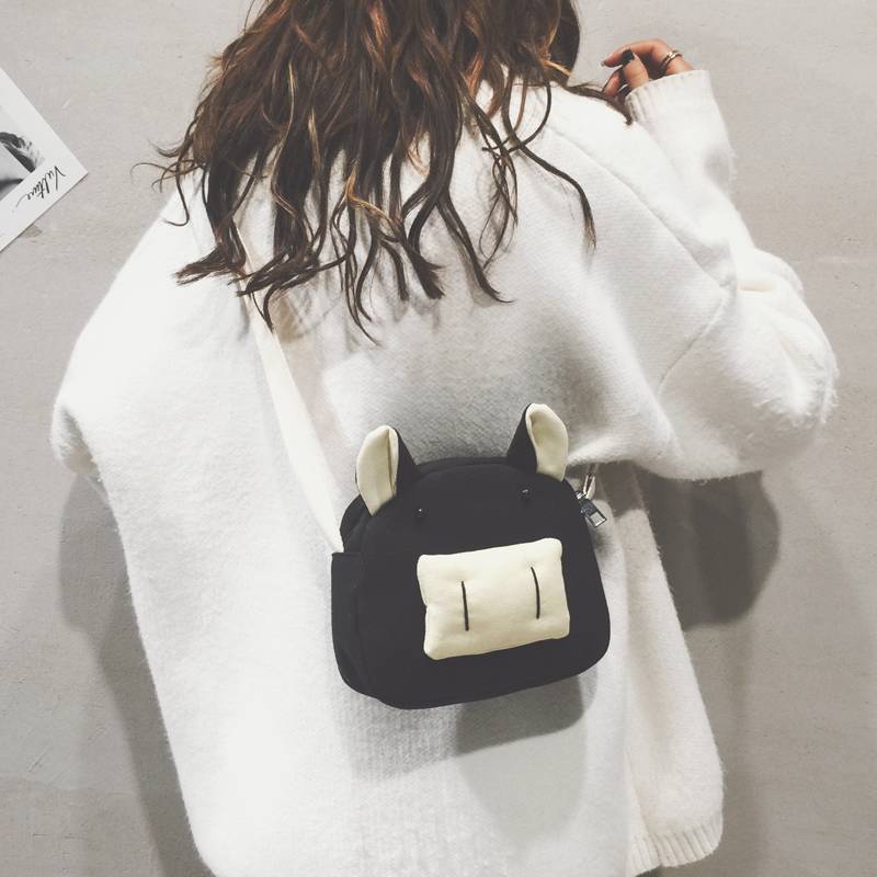 帆布小包包女秋冬新款潮可爱萌少女小猪包ins软妹单肩斜挎包
