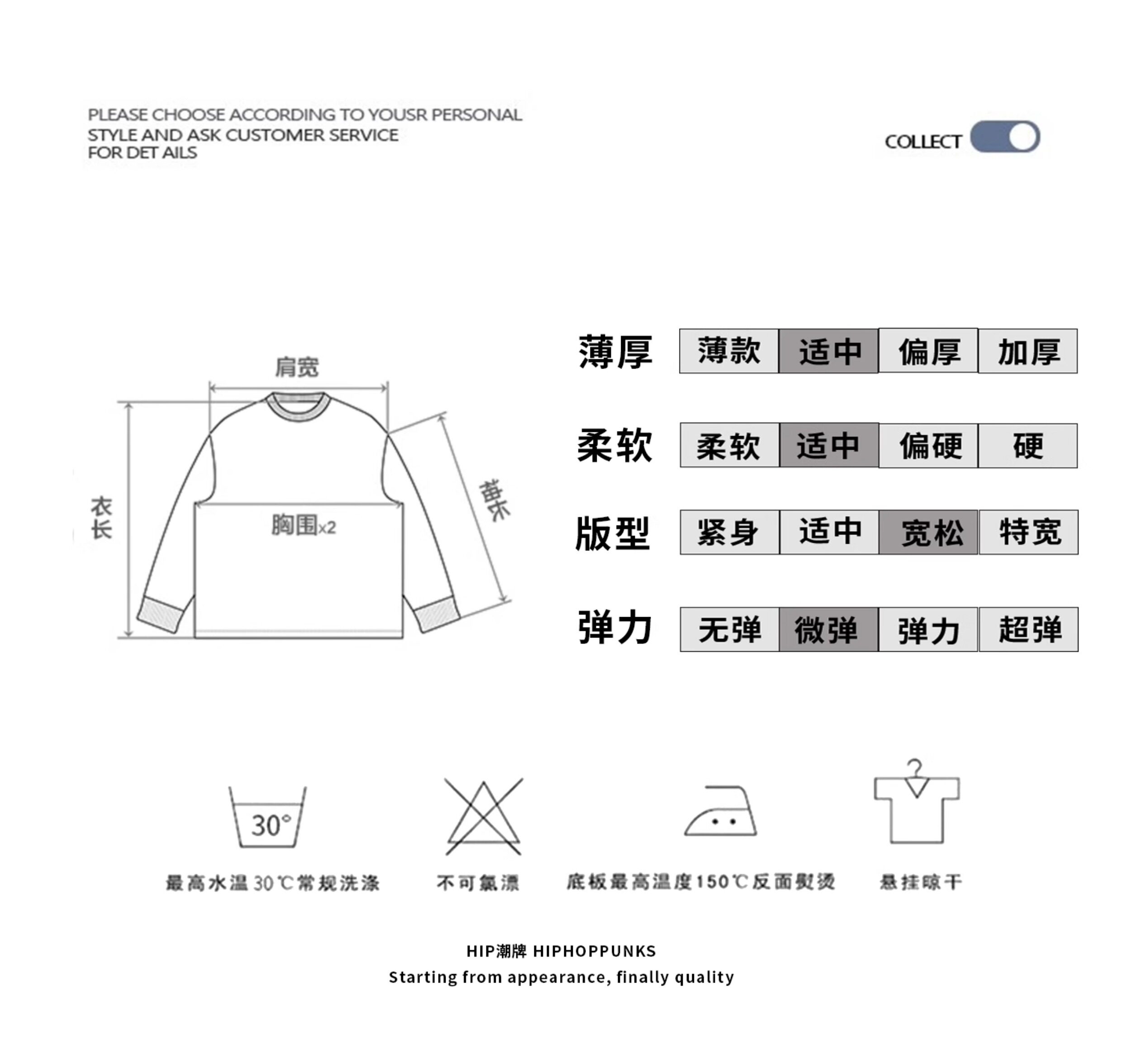 HIP潮牌美式圆领卫衣休闲百搭字母印花大码宽松重磅纯棉长袖上衣