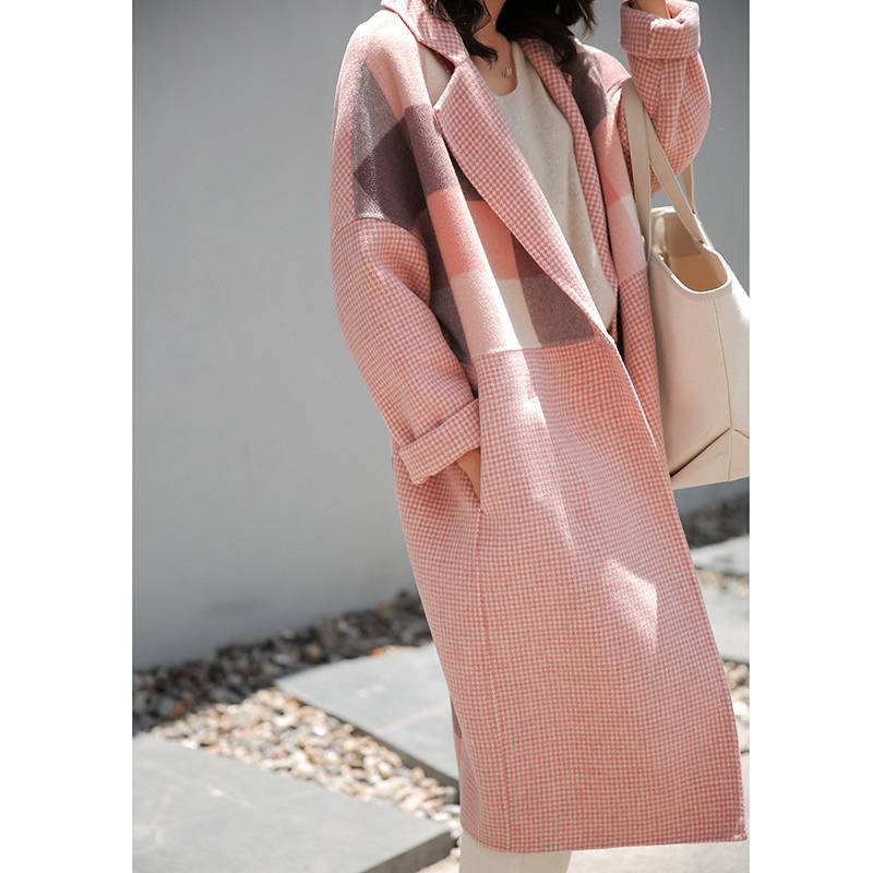2018秋冬新款韩版时尚女装宽松显瘦粉色呢子大衣中长款毛呢外套 赠礼品