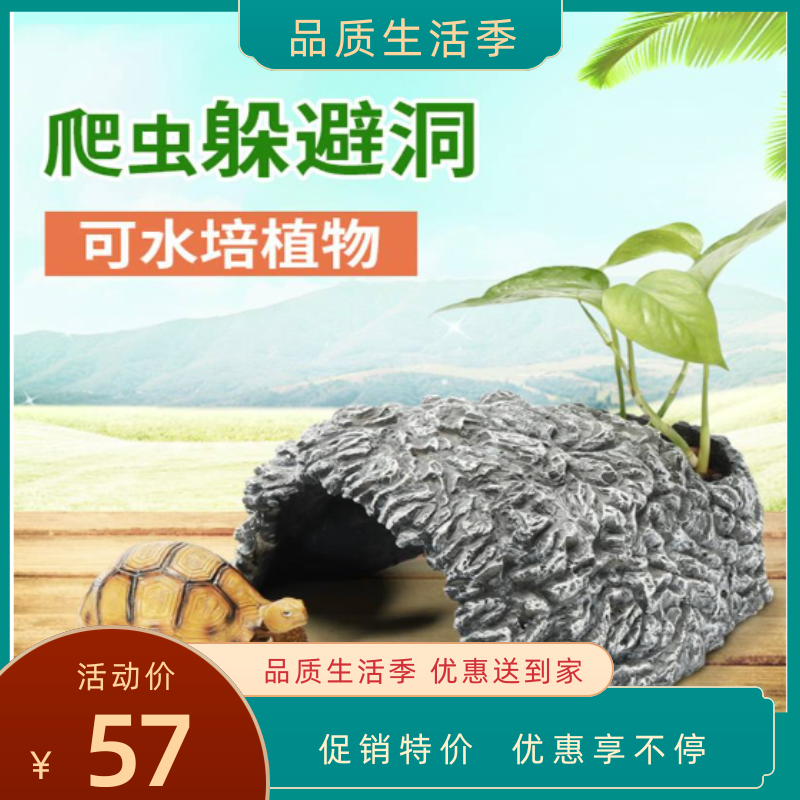 躲避屋乌龟爬虫爬宠避难洞摆件晒台龟石头水族馆用品造景树洞瓦片