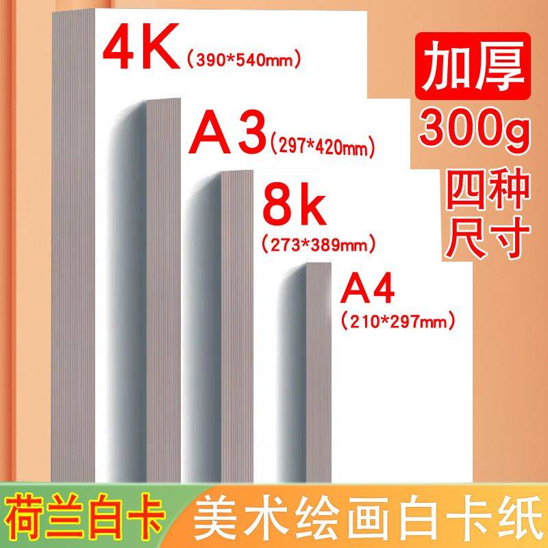 荷兰白卡纸加厚A4绘画马克笔彩铅专用美术纸A38K手工厚硬白色卡纸