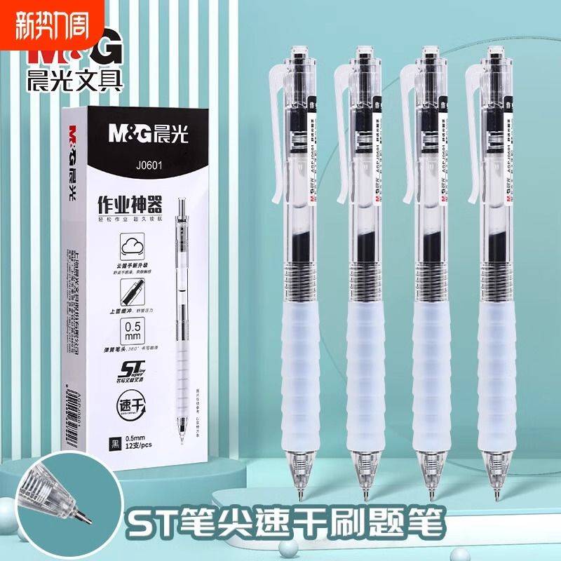 晨光作业神器按动中性笔ST速干笔0.5mm学生考试刷题笔顺滑不断墨