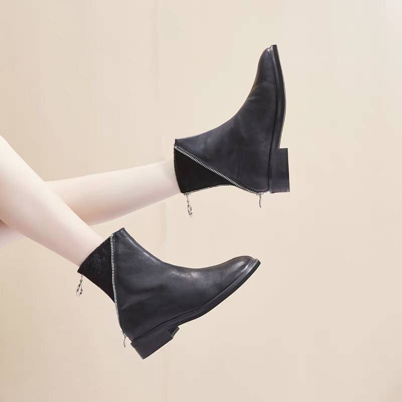 2018新款中跟后拉链加绒短靴冬马毛马丁靴时尚潮鞋韩版百搭女靴子