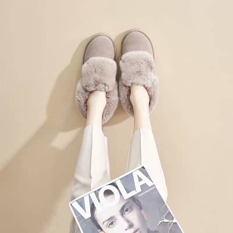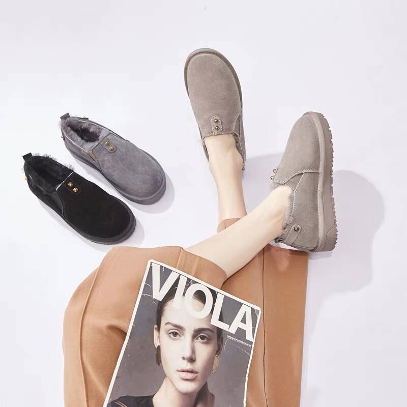 2018新款平底真皮羊毛毛鞋加绒保暖豆豆鞋冬棉鞋学生雪地靴女鞋子