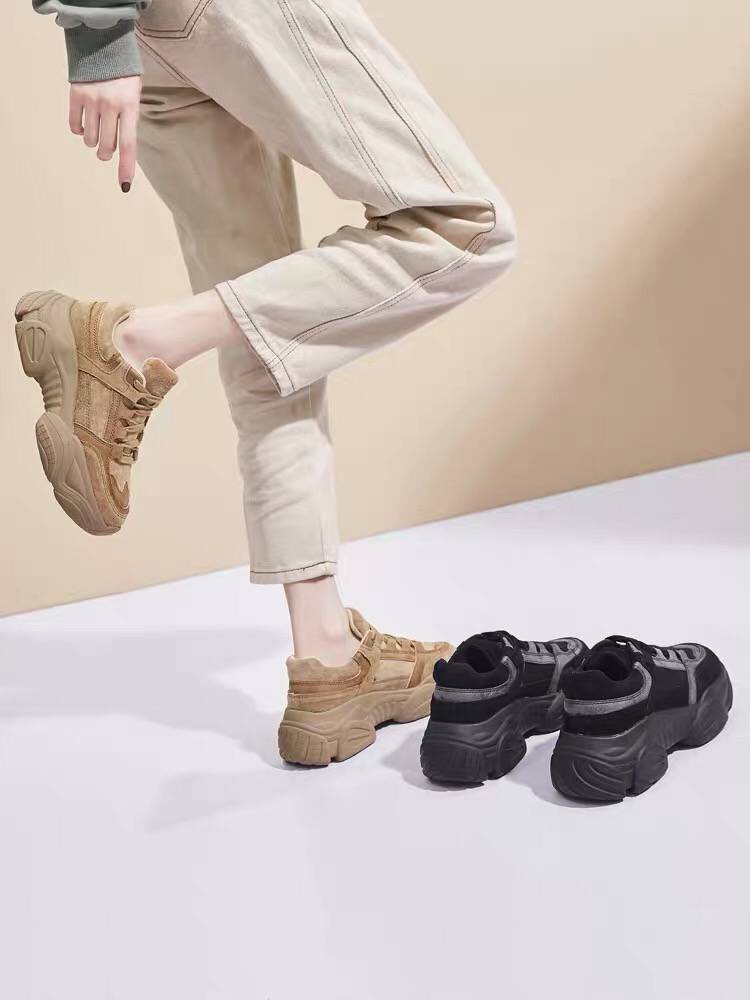 2018新款系带松糕厚底老爹鞋冬百搭真皮休闲鞋ins网红款女鞋子潮