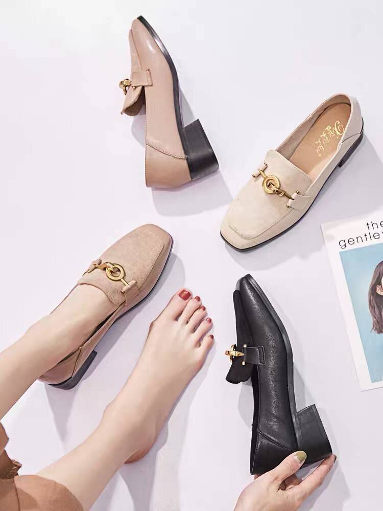 豆豆鞋秋女2018新款温柔鞋两穿粗跟单鞋ins小皮鞋中跟方头乐福鞋