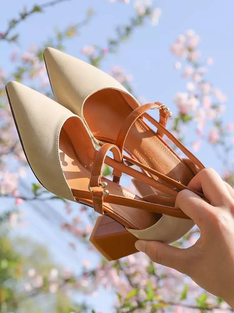 韩版中跟粗跟单鞋一字扣带尖头高跟鞋2018春夏新款玛丽珍包头凉鞋