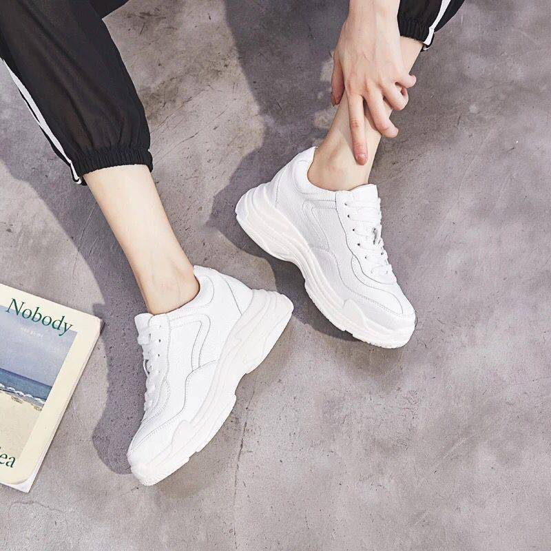 2018新款厚底运动鞋女春秋韩版百搭系带小白鞋圆头平跟中跟女鞋子